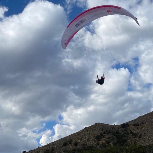 Professional ultra runner Cal Neff in Challenge got to launch first (he almost beat me, and I was driving!) and just carried in the direction of goal in Nephi to the north along the escarpment. Not long after the rest of the field started arriving but with a fully gray sky and only little tiny bits of sun popping along course line everyone wisely took their time getting into the air. Sometime during every week of the Global Rescue XRedRocks I throw a very real warning into the morning briefing that tends to make our visiting friends from overseas a bit nervous. When on foot in this part of Utah you’ve got a pretty decent chance of coming across bears, rattlesnakes, mountain lions and other critters that could negatively impact your day if you’re not careful. But I’ve yet to warn people of badgers. But that’s exactly what Cal ran across (literally). Turn the volume up and check this out: