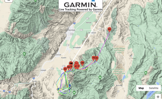 Our first two Adventure Division pilots have just made goal and David Chen is getting there shortly. Meanwhile some of the pilots just behind our leaders in the PRO division have hit the dirt and are charging north on foot as they got shaded out and were jumped in the air by Jared Scheid and Tyler Burns who just landed into goal with HUGE smiles!