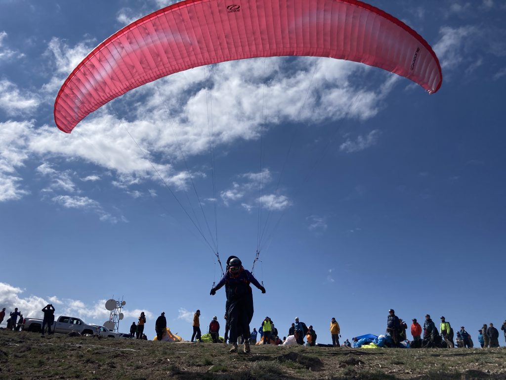William has pushed out into the flats, several pilots are soaring the cove bowl, the rest of the field is patiently watching the sky. We’re getting a lot of shade – what’s the move???
